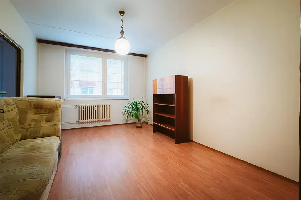 Byt disponuje vstupní chodbou, samostatným WC, koupelnou se sprchovým koutem, kuchyňskou linkou se spotřebiči, obývacím pokojem, ložnicí a dětským pokojem. Z dětského pokoje je přímý vstup na balkon. K bytu náleží také sklep 4 m².V bytě je na podlahách linoleum, plovoucí podlaha a dlažba. V bytě je již zděné jádro. Nové odpady, voda i elektřina v koupelně, na WC a v kuchyni. Okna plastová dvojskla. Celý dům prošel revitalizací. Vytápění bytu i ohřev vody je zajištěn z centrální kotelny (plyn). Energetická náročnost budovy je C. Měsíční náklady na bydlení jsou cca 8 000 Kč. Byt je volný ihned.