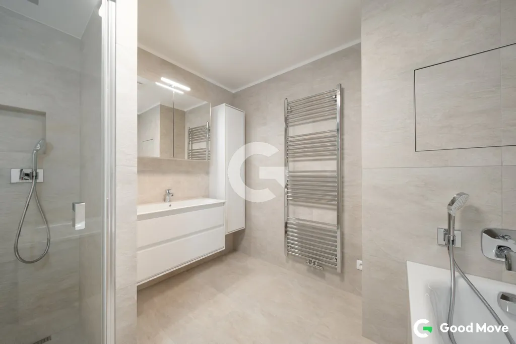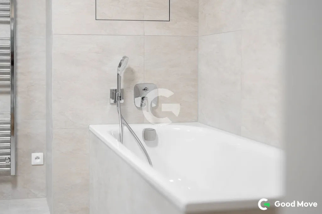 Byt je dále vybaven bezpečnostními vstupními dveřmi, kvalitními vinylovými podlahami a kompletním osvětlením. Koupelna disponuje vanou i sprchovým koutem, bateriemi Hansgrohe a keramickými obklady 60 x 60 cm. Praktickým detailem je také instalace bidetu na samostatné toaletě. Díky těmto úpravám je byt připraven k pohodlnému bydlení bez nutnosti dalších investic.