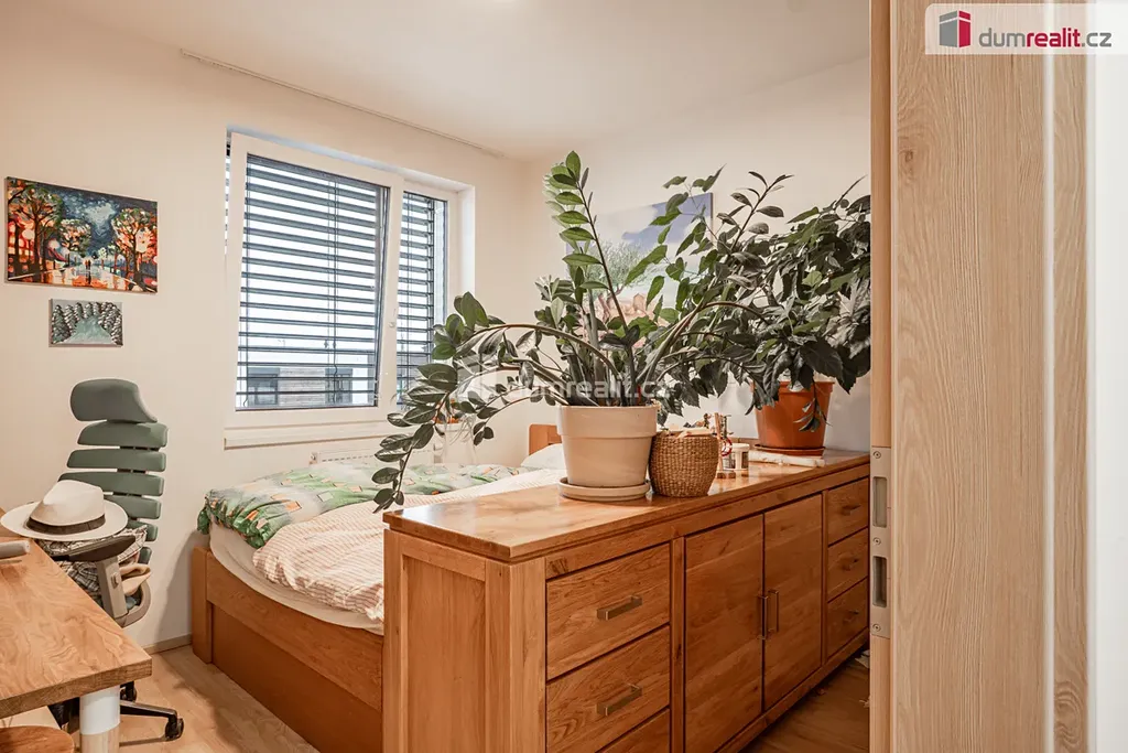 samostatný pokoj (pracovna / ložnice / pokoj pro hosty) – vybudován už při výstavbě v rámci klientských změn developera, lze vrátit do původního stavu na 5kk a zvětšit tím obývací pokoj do původního stavu, viz přiložené plánky u fotografii, aktuálně je pokoj z části obývacího pokoje tam, kde je na plánku vyznačena sedačka, stůl a křesla.