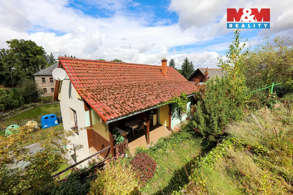 Prodáme rodinný dům 4+1 v malebné obci Křečov. Nachází se v krásné krajině Manětínska s čistým ovzduším a zároveň v dojezdové vzdálenosti od Plzně. Dům je užíván jako chalupa, disponuje vším potřebným pro pohodlné trávení volného času i bydlení. V přízemí procházíme doleva přes předsíň do kuchyně, koupelny a spižírny nebo obývacího pokoje vpravo. Po schodech pokračujeme do patra s prostornou chodbou, třemi pokoji, WC, předsíňkou a východem na krytou terasu a zahradu. Navíc je tu jeden sklep v domě s přístupem zvenku, druhý samostatně stojící, patrová stodola, venkovní suché WC a dřevník. Na pozemku zbývá dostatek místa pro případnou garáž, parkování je dostupné před domem i v zahradě. Nad domem pokračuje do svahu zahrada s ovocnými stromy a keři. Každý člen rodiny zde najde dostatek soukromí i zábavy, pro pány je příležitost tvořit ve stodole, pro dámy květinové království, pro děti mnoho inspirativních zákoutí doma i na zahradě, návštěvy okouzlíte posezením na terase. Neváhejte!