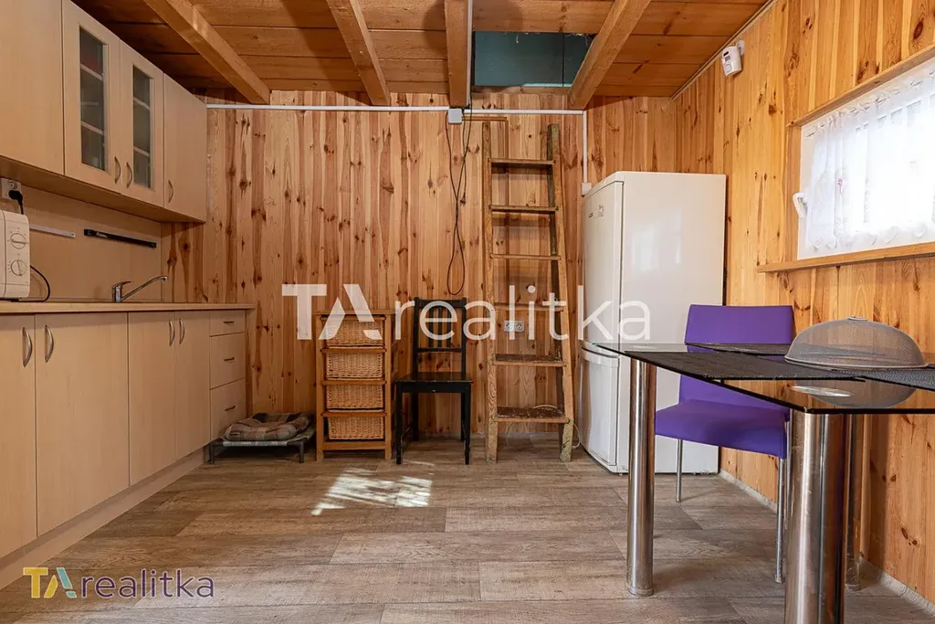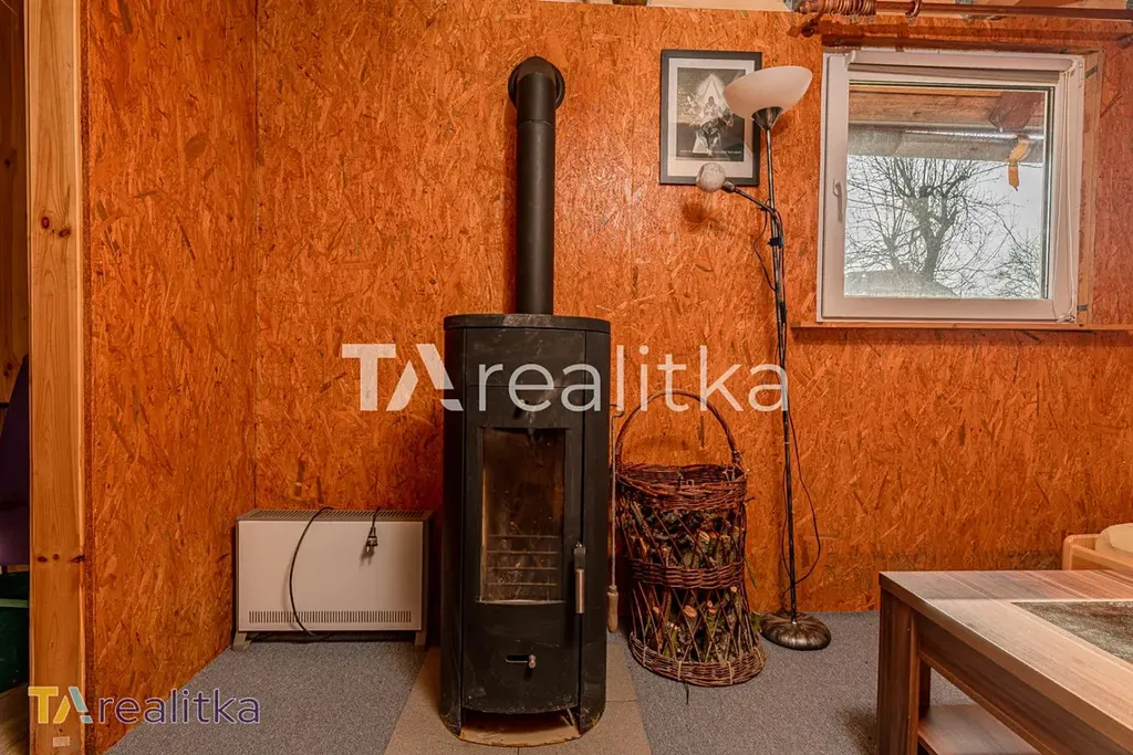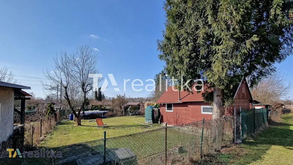 Na pozemku se nachází chata s přivedenou elektřinou, která nabízí zázemí nejen víkendové pobyty. V přízemí je kuchyň a obývací pokoj, kde jsou instalována kamna, která hravě vytopí celý prostor i v chladnějším počasí. V podkroví se nachází prostor, který lze využít k přespání. Chata je navíc částečně podsklepená. K zahradě dojedete autem.