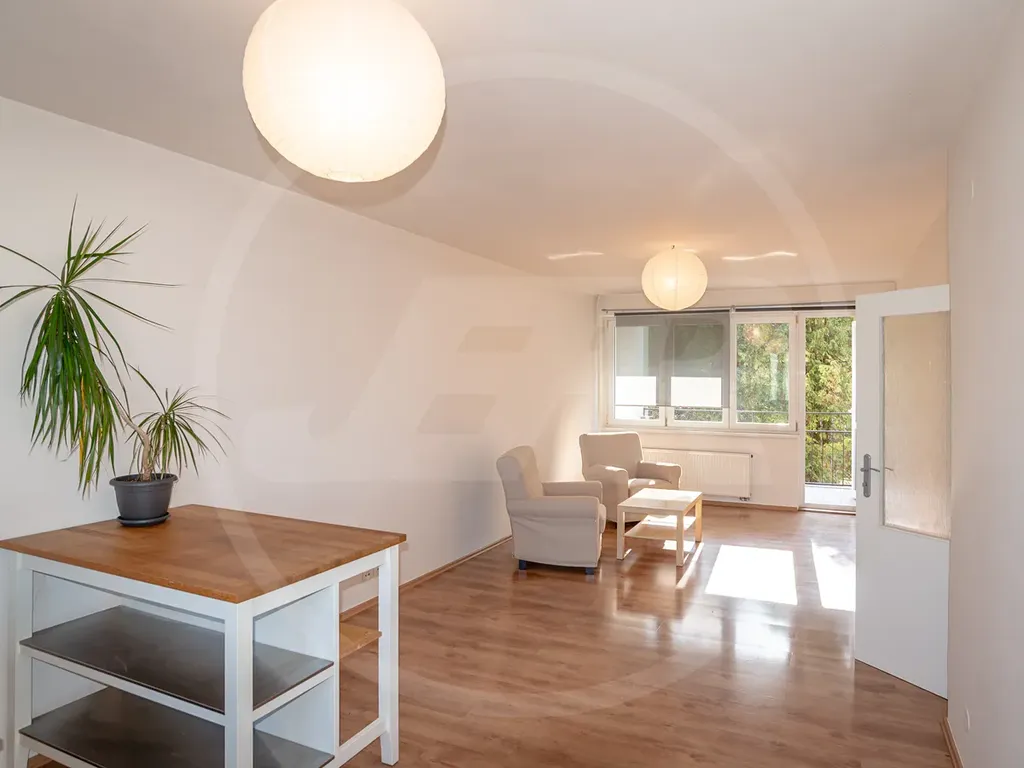 Obě ložnice jsou samostatné. Velký obývací pokoj s jídelnou je průchozí do nevelké kuchyně. Orientace bytu je východo-západní s celodenním osluněním.