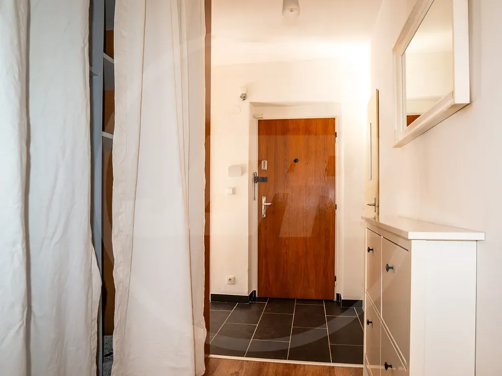 Dům stojí v klidné ulici, kam je orientováno okno z kuchyně. Balkon a ložnice jsou s výhledem do zeleně.