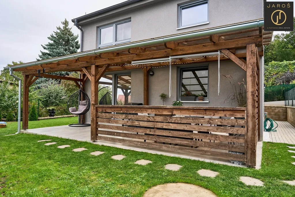 Celý dům je postaven z ytongu, Má šedá plastová okna s trojsklem, vnitřní žaluzie den a noc. Přehled o okolí domu Vám zajistí kamerový systém se záznamem.