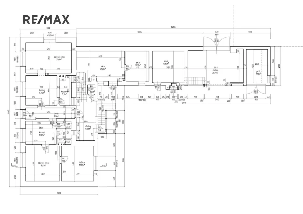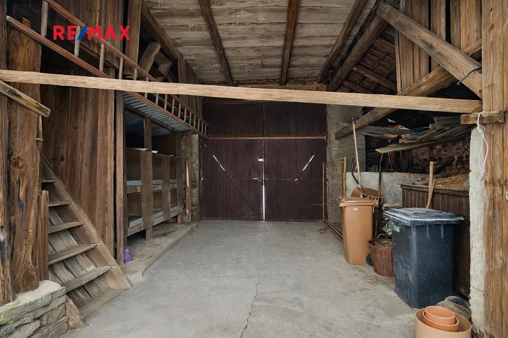 Na obytnou část domu navazuje hospodářská část objektu, která zahrnuje kotelnu o velikosti 21,20 m², bývalé chlévy (nyní využívané jako sklady o velikostech 15,60 m² a 10,78 m²), stodolu o velikosti 28,9 m² a garáž o velikosti 11,13 m².