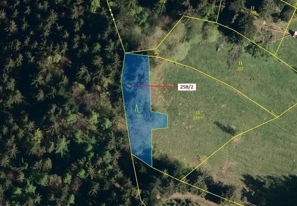 Lesní pozemek o výměře 697 m2, parcelní číslo 258/2, podíl 1/1, katastrální území Zděchov, obec Zděchov, obec s rozšířenou působností Vsetín, okres Vsetín, Zlínský kraj.