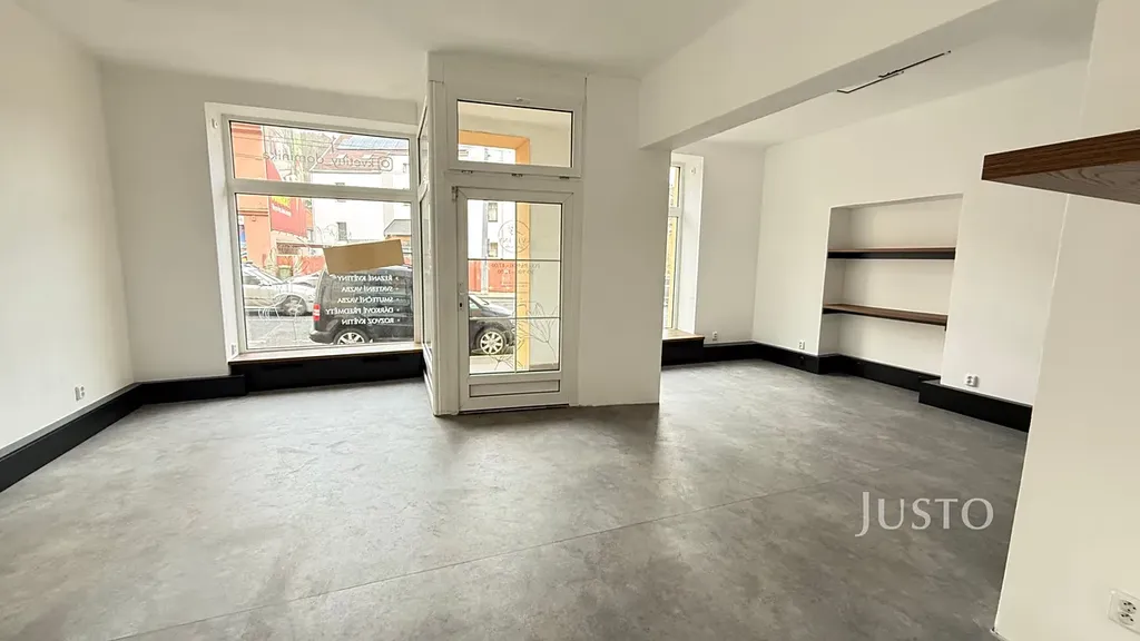 Kanceláře sestávají z několika místností, které nabízí flexibilní využití jako open space, zázemí pro jednotlivá oddělení či skladovací prostory. Hlavní část je světlá, s velkými plastovými okny orientovanými do ulice, která zajišťují výbornou viditelnost a dostatek přirozeného světla. Vstup do objektu je přímo z frekventované ulice, což zvyšuje atraktivitu například pro sídlo firmy, obchodní zastoupení nebo klientské centrum.