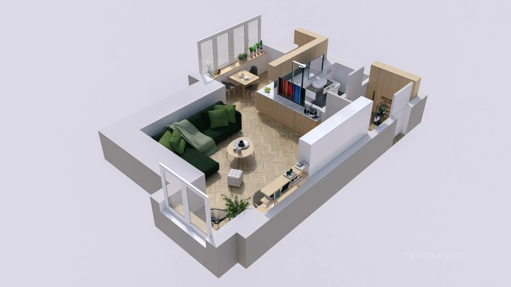 Byt by se nacházel v 5. nadzemním podlaží, vysoko nad ruchem města. Odměnou za pár schodů navíc je klid, soukromí a příjemná atmosféra bydlení pod střechou, která má své neopakovatelné kouzlo.