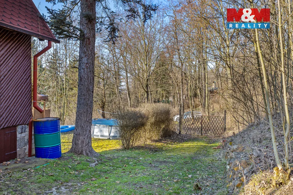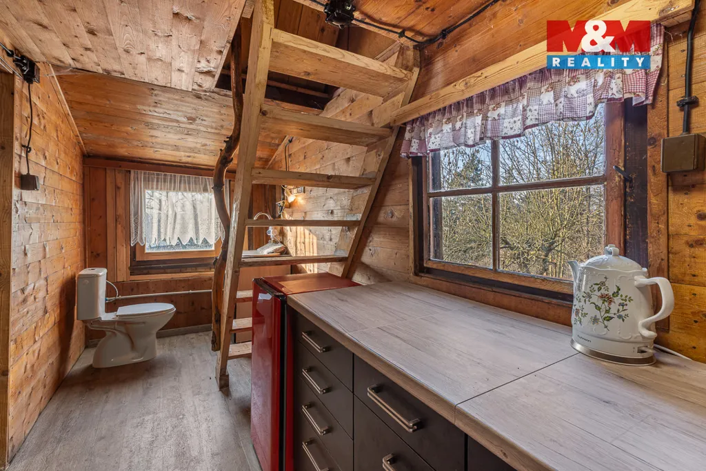Nabízíme k prodeji útulnou dřevěnou chatu na kamenném základu, situovanou na klidném konci obce Mradice. Chata s terasou je podsklepená a prošla rozsáhlou rekonstrukcí. Přes zasklenou verandu vstoupíte do pěkného obývacího pokoje, který plynule navazuje na kuchyň. Odtud Vás dřevěné schody zavedou do podkroví určeného ke spaní, s malým balkónem, ideální místo pro ranní kávu. Nemovitost je napojená na elektřinu, má jímku, a voda je k dispozici z nedalekého vod. řádu. Interiér nabízí vinylové podlahy, novou rohovou sedací soupravu s komodou, také novou kuchyňskou linku. Je zde splachovací wc. Komín je již připraven, takže si můžete zvolit způsob vytápění podle svých potřeb. Okolo chaty se rozprostírá krásná zahrada s ovocnými stromy, která nabízí spoustu prostoru pro zahradničení, či pro relaxaci pod pergolou. Je tu také kůlna, skleník, venkovní sprcha či suché wc. Pozemek je oplocen živým plotem. .Hledáte odpočinek, krásný výhled i dostatek soukromí? Tato chata je ideální volbou