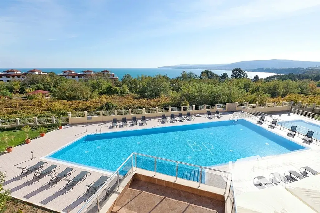 Nabízíme prostorný byt se dvěmi ložnicemi ve třetím patře v uzavřeném komplexu, který se nachází v malebné oblasti "Čaika" v klidného přímořského města Byala, 450 metrů od písečné pláže a přístavu, a restaurace "Čaika" s krásným výhledem na moře a zátok. Byt se skládá z prostorného obývacího pokoje s kuchyní a jídelním koutem ve společném prostoru, hlavní ložnice s vlastní koupelnou s toaletou, druhá ložnice, druhá koupelna s toaletou a prostorné terasy s výhledem na moře a upravené území komplexu. K bytu náleží sklep. Má velkou plochu, vhodný na pohodlné dovolené i pro velkou rodinu. Užitná plocha (včetně sklepa o ploše 6 m2) je 101 m2, celková plocha je 120 m2. Byt je dobře zařízený a vybavený a cena je včetně nábytku a vybavení dle fotografií. Oplocený areál komplexu má následující vybavení: 2 bazény, rekreační oblast s lehátky a slunečníky, restaurace, parkoviště, minimarket, posilovna, masážní místnost, dětské hřiště a spousta zeleně. Roční poplatek za údržbu je 15.50 €/m2.