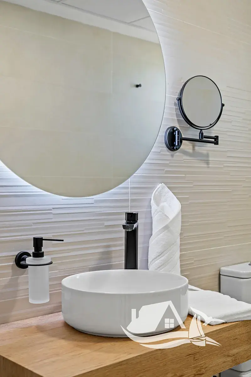 Exteriéry jsou navrženy v souladu s přírodním charakterem oblasti a každá jednotka disponuje soukromou zahradou a terasou ideální pro relaxaci, rodinné posezení nebo večerní grilování. Soukromá garáž přináší komfort a bezpečnost, které usnadňují každodenní život. Interiéry jsou kompletně zařízené a připravené k nastěhování, s elegantní porcelánovou dlažbou, elektrickými roletami, videotelefonem a vestavěnými skříněmi pro maximální pohodlí a pořádek. Každý byt nabízí tři ložnice a dvě koupelny, což zaručuje dostatek prostoru pro rodiny i páry hledající praktické a stylové bydlení.