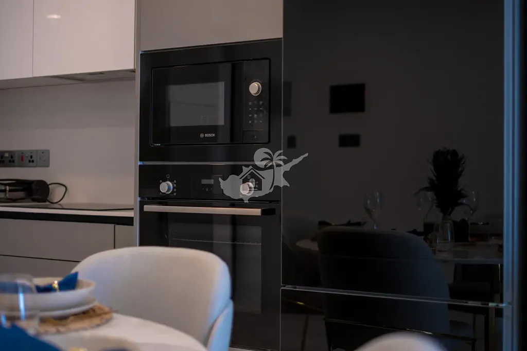Moderní apartmán 3+kk s balkonem a krásným výhledem na moře a bazén. Nachází se jen pár kroků od pláže, nabízí soukromou pláž, venkovní bazén, fitness, sky bar a barbecue zónu.