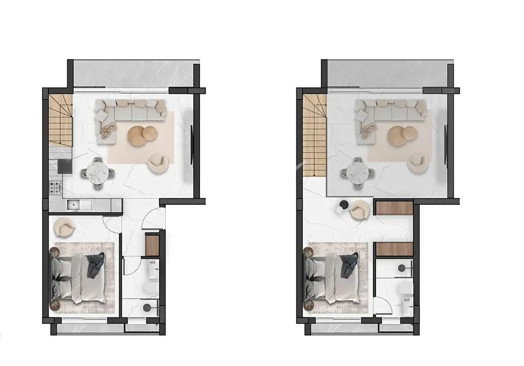 Projekt se skládá ze dvou řád vil u moře a prémiových apartmánů a penthousů za nimi.