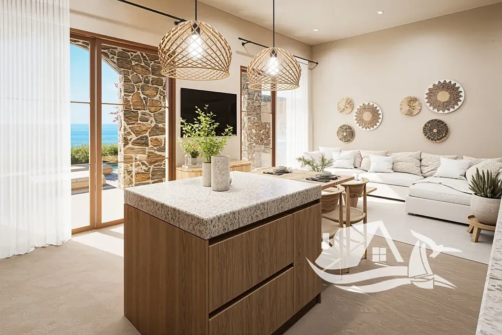 Nabízíme exkluzivní mezonetovou vilu 3+kk s obytnou plochou 93 m² a soukromým pozemkem o velikosti 111.81 m², nacházející se v projektu šesti vil v malebné obci Plaka u Chanie, situovaný ve svahu v amfiteatrálním uspořádání. Díky tomu má vila nerušený výhled na moře, Bílé hory i dechberoucí západy slunce.