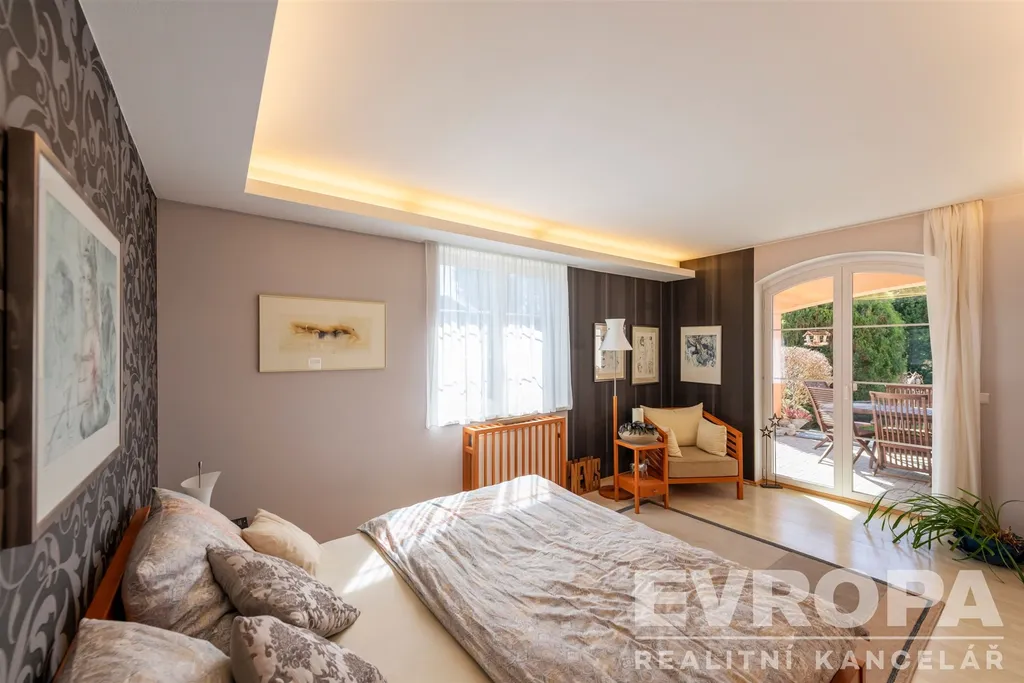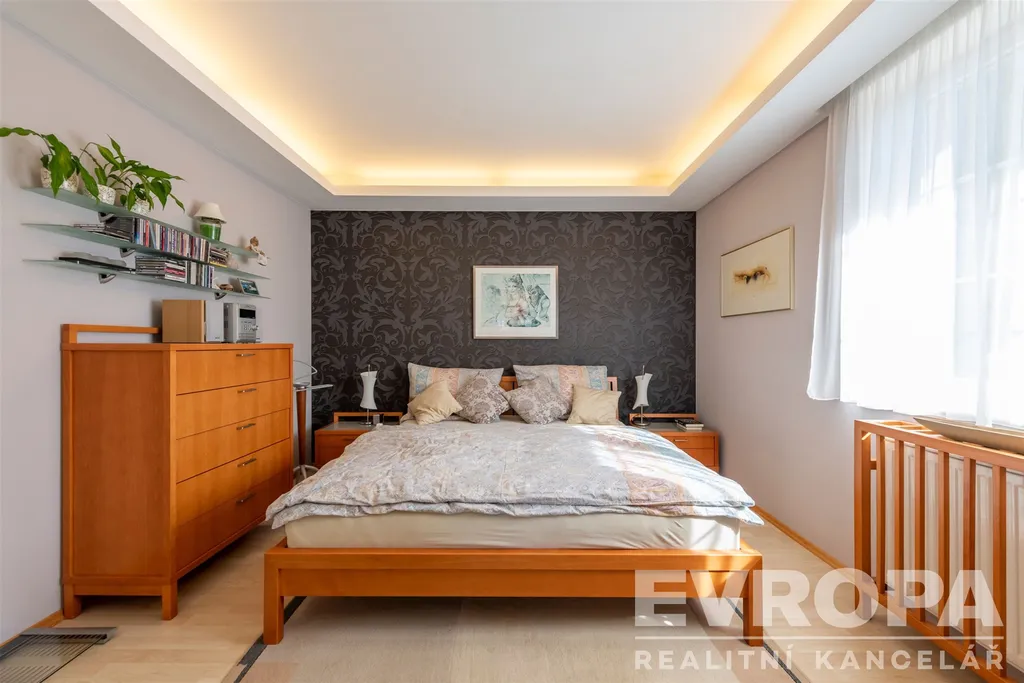 Patro: tři pokoje (jeden velmi prostorný), šatna, samostatné WC a velká koupelna s vanou a prostorem pro domácí fitness.