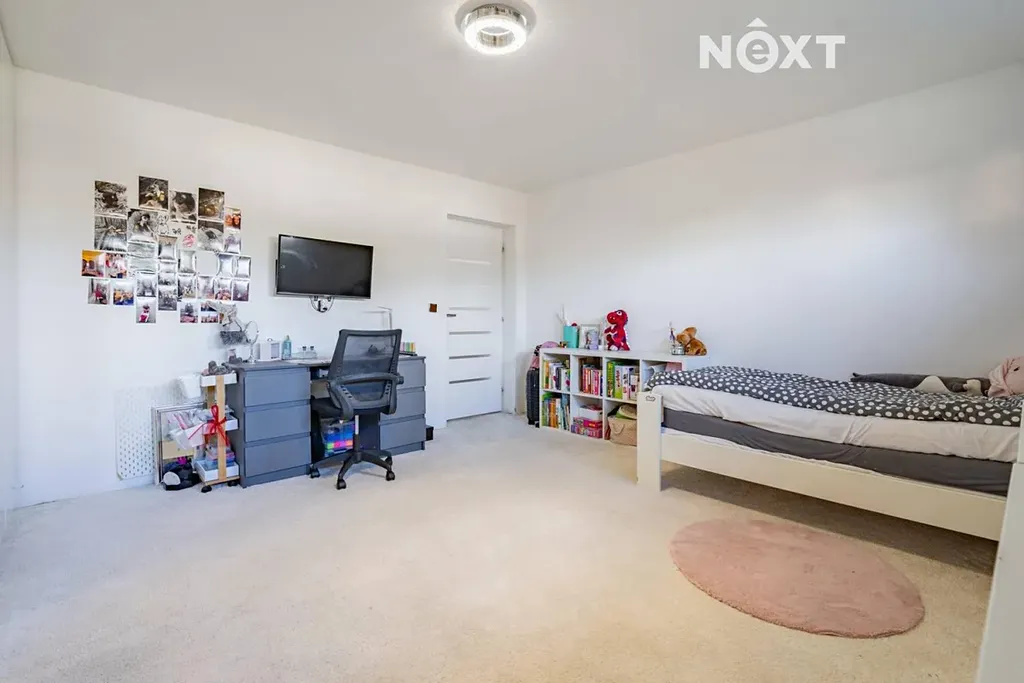 Dlouhá chodba na opačné straně domu zajišťuje samostatné vstupy do technické místnosti s místem pro pračku a sušičku, samostatného WC, tří dalších ložnic a prostorné koupelny s velkou vanou a druhým WC. Jeden z pokojů je aktuálně využíván jako kosmetické studio a má samostatný vchod, což otevírá možnost pro podnikání přímo z domu.