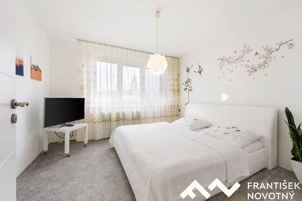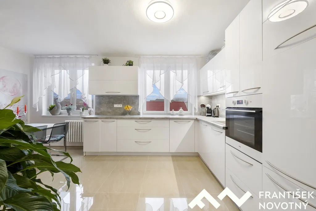 prostorný obývací pokoj se vstupem na lodžii, světlá kuchyně, tři neprůchozí obytné místnosti, koupelna s bezbariérovým sprchovým koutem.