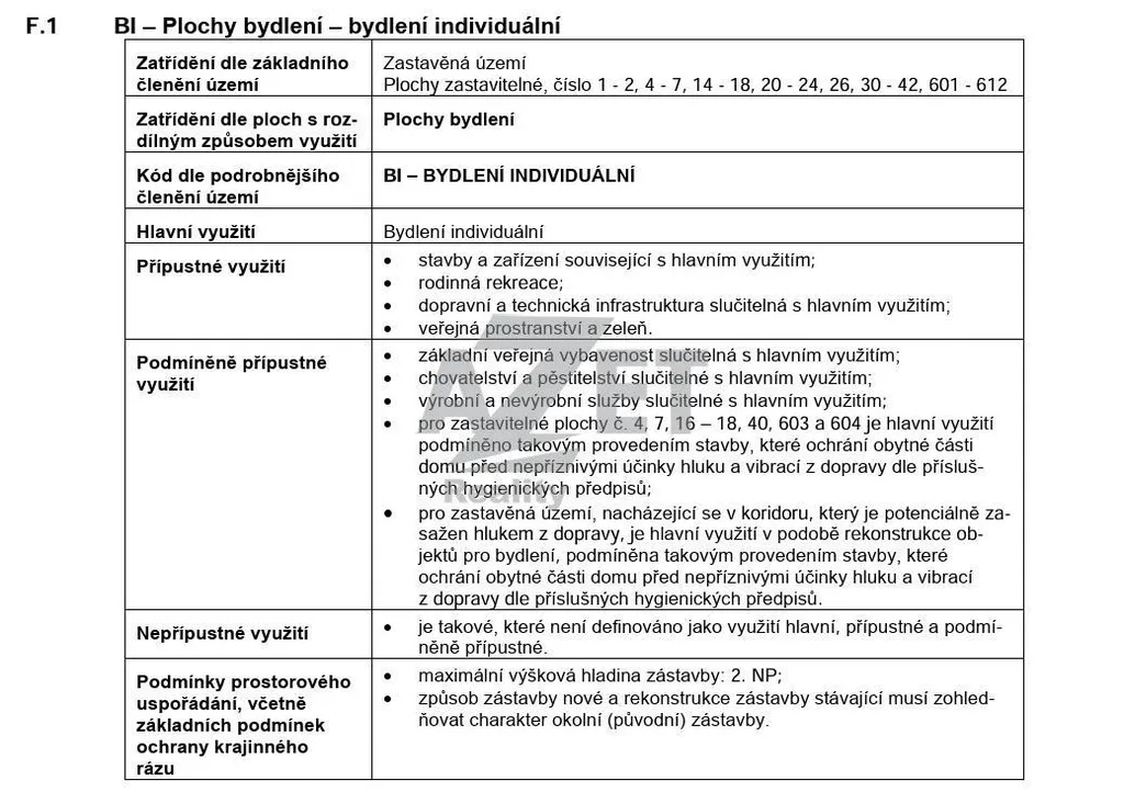 Nemovitost je dle územního plánu v ploše BI bydlení individuální. Bytové domy v této lokalitě územní plán nepovoluje. Právě proto je nabídka ideální pro klienta, který chce vytvořit velkorysé rodinné bydlení.