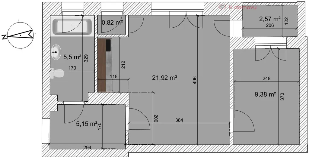 Nabízíme k prodeji byt o dispozici 2+kk a přibližné užitné ploše 43,3 m2 umístěný ve druhém podlaží pětiposchoďového cihlového domu na ulici Zvěřinova v Brně - Černovicích. Z prostorné předsíně (5,1 m2) se vchází do koupelny (5,5 m2) s vanou, umyvadlem a toaletou a do obývacího pokoje s kuchyňským koutem o výměře 21,92 m2. Ke kuchyni přiléhá výklenek na vestavěnou spižírnu (0,82 m2). Z hlavního pokoje se dostaneme také na hlubokou lodžii (2,06 m x 1,22 m). Do lodžie ústí okno z ložnice (9,38 m2). Všechna okna jsou orientována na východ s výhledem do vnitrobloku. Ten je revitalizovaný, zařízený dětským hřištěm a posezením na lavičkách. Příjemný kus přírody v centru města.