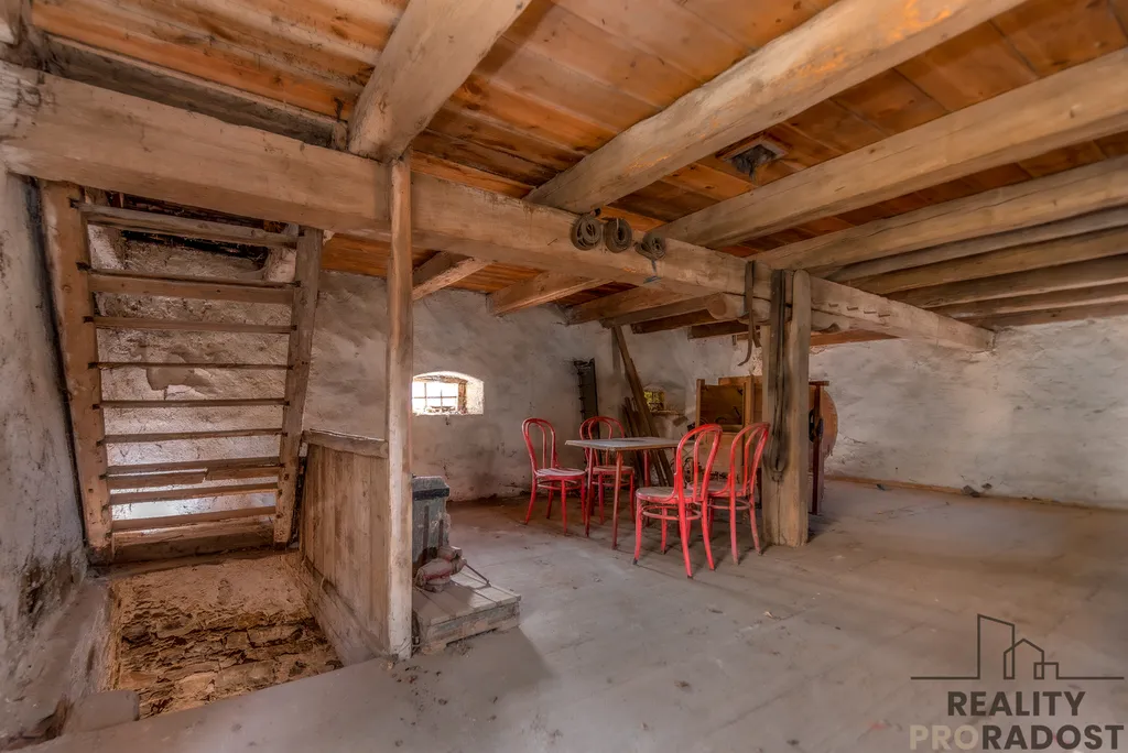 Na začátku Dunajovic se nachází nenápadná stodola, kterou se dostanete na pozemek s ovocnými stromy a úžasným výhledem. Nevěděla jsem, kam se mám dívat dříve a najednou jsem uviděla kamennou stavbu - bývalou sýpku. Nádhernou stavbu s dřevěnými masivními trámy a kouzlem, za které by se nemusel stydět romantický film. Úplně jsem tam viděla fotoateliér nebo místo, kde by se mohli konat svatby či narozeniny. Pokud byste tu chtěli trávit volný čas, tak je zde 11 meruněk a 2 jabloně a spousta místa i na podnikání, či na uložení veteránů.