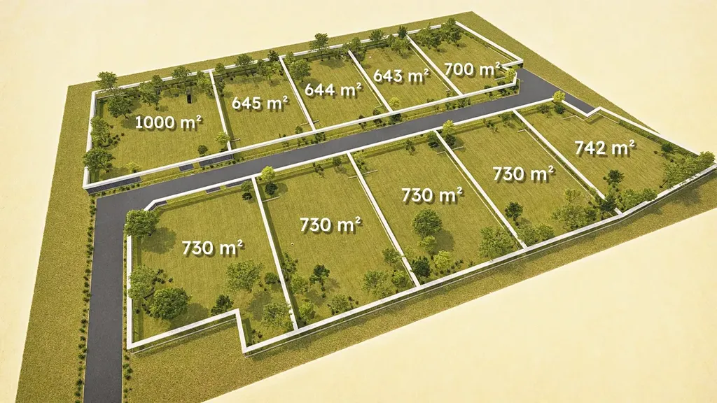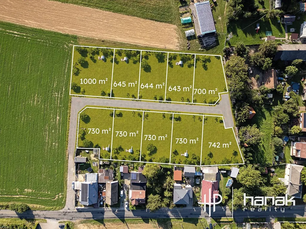 Základní členění nabízí 10 stavebních míst se středovou příjezdovou cestou. Rozměry pozemků jsou od cca 514 m2 do 746 m2 a budou kompletně zasíťované v druhé polovině tohoto roku.