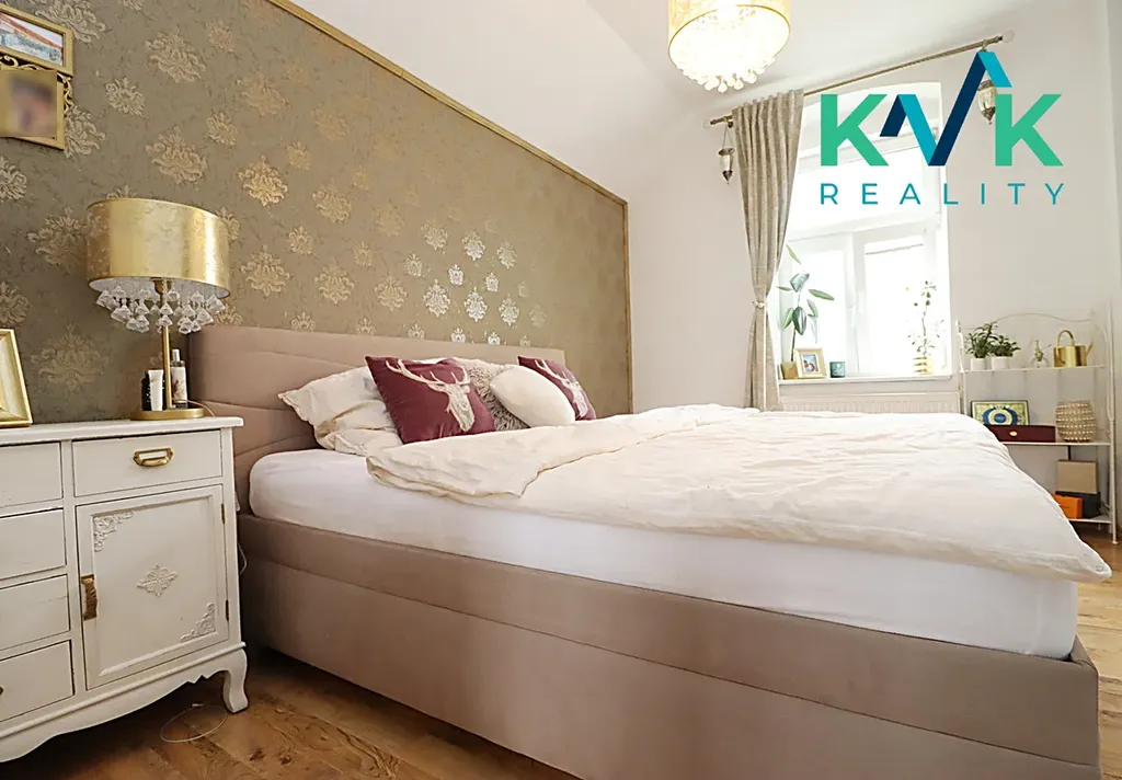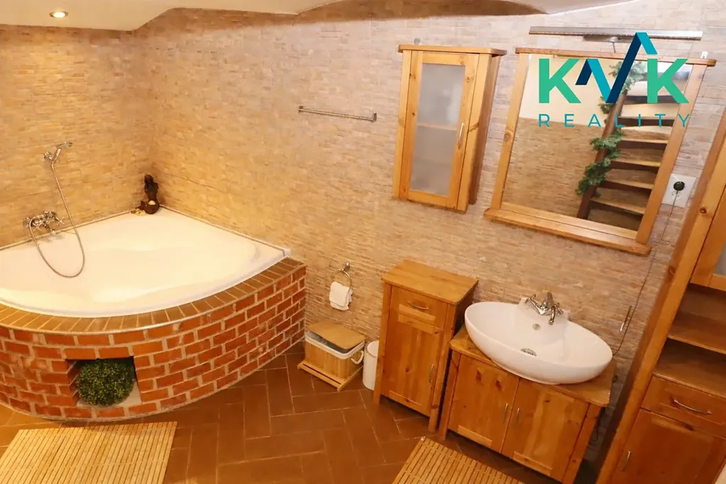 Byt prošel celkovou rekonstrukcí v roce 2016 a nabízí zajímavé dispoziční řešení. Hlavní obytná část bytu je doplněna prostornou koupelnou o velikosti 12 m², která je umístěna v 1. podzemním podlaží. Koupelna je vybavena vanou, toaletou a prostorem pro pračku i sušičku a je s bytem propojena točitým schodištěm, což dodává bytu jeho jedinečný charakter.