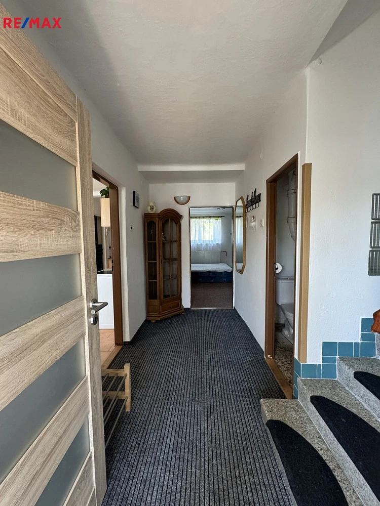 Vstup do domu je společný. Velkou výhodou je možnost rozšíření obytné plochy – přestavbou původního seníku a dřevníku lze vytvořit další dvě bytové jednotky nebo rozšířit obytný prostor podle vlastních potřeb.