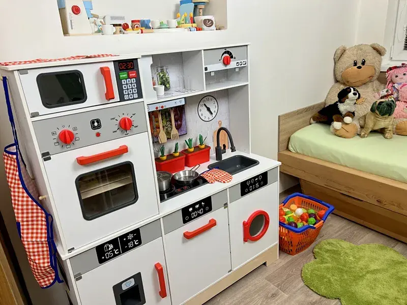 Přízemí: vstupní hala se schodištěm a úložnými prostory, plně vybavená prostorná kuchyň s novými spotřebiči: americké lednice, indukce, trouba s grilem, myčka, odsavač, mikrovlnná trouba, kávovar na zrnkovou kávu, rychlovarná konvice, toustovač, topinkovač, tyčový mixér a bohaté kuchyňské vybavení, jídelna s masivním dubovým stolem, lavicí a židlemi, obývací pokoj s koženou sedačkou, konferenčním stolkem a velkou Smart TV, oddělená místnost pro děti, s pohovkou, kterou lze využít také na spaní, skříň a dětský nábytek, prostorná koupelna s vanou, sprchovým koutem, dvěma umyvadly, příprava pro pračku a sušičku, 2x samostatné WC s umyvadlem, technická místnost s ohřevem vody přes solární systém.