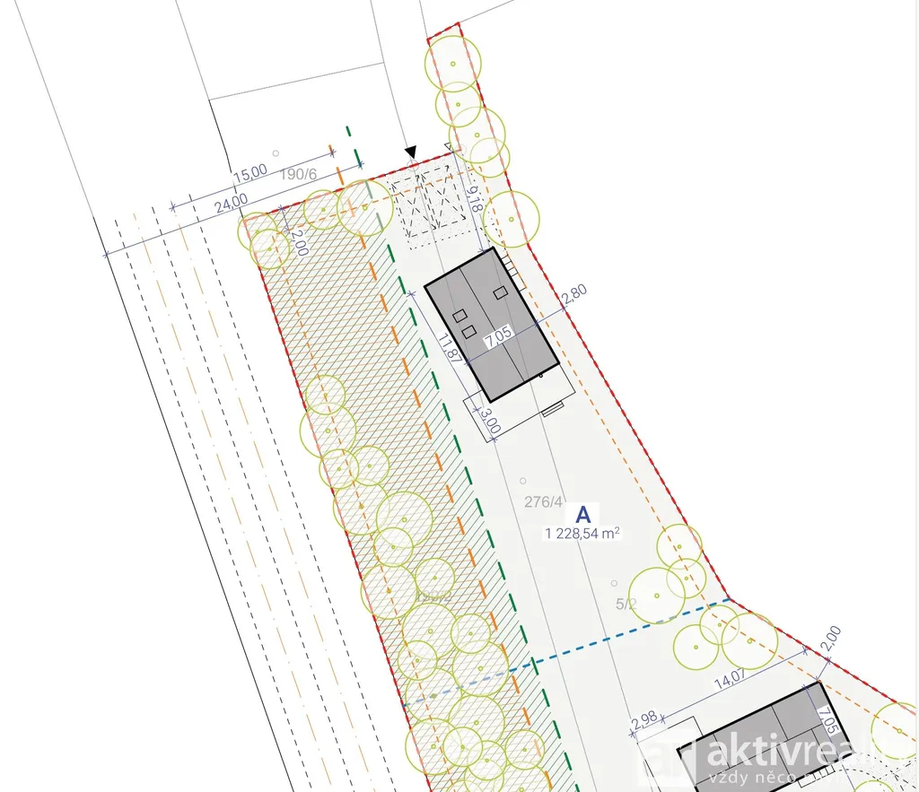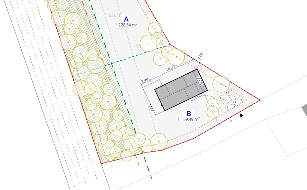 přikoupit pozemek A (1.228) m² a mít větší zahradu, případně druhý pozemek pro dalšího rodinného