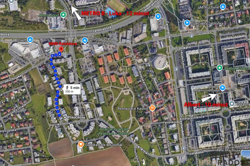 Perfektní dostupnost: Pouhých pár minut chůze od stanice metra B (Luka / Stodůlky). Do centra Prahy se dostanete za 15 minut.