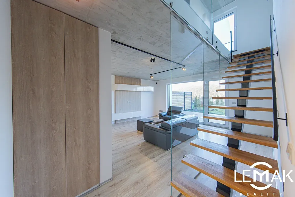 Dům je postaven s využitím monolitických stropů a celkově disponuje podlahovým vytápěním, což přispívá k rovnoměrnému a příjemnému teplu v celém domě. K nemovitosti náleží také dvě parkovací místa a zahrada.