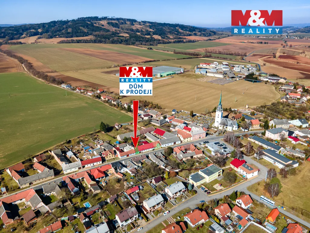 Dům stojí na vlastním pozemku o velikosti 325 m². Součástí je také stodola a menší zahrádka za domem vhodná pro zahradničení nebo odpočinek.