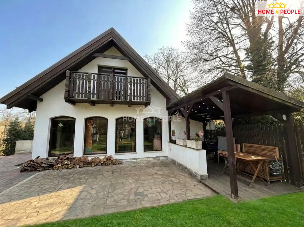 U domu je vybudovaná dřevěná pergola s venkovní kuchyní, která poskytuje příjemné venkovní posezení s kulinářskými zážitky. Udržovaná zatravněná zahrada s množstvím stromů a okrasných trvalek je rovinatá, dům je posazen do svahu a za domem další ca 1/3 zahrady je mírně svažitá.