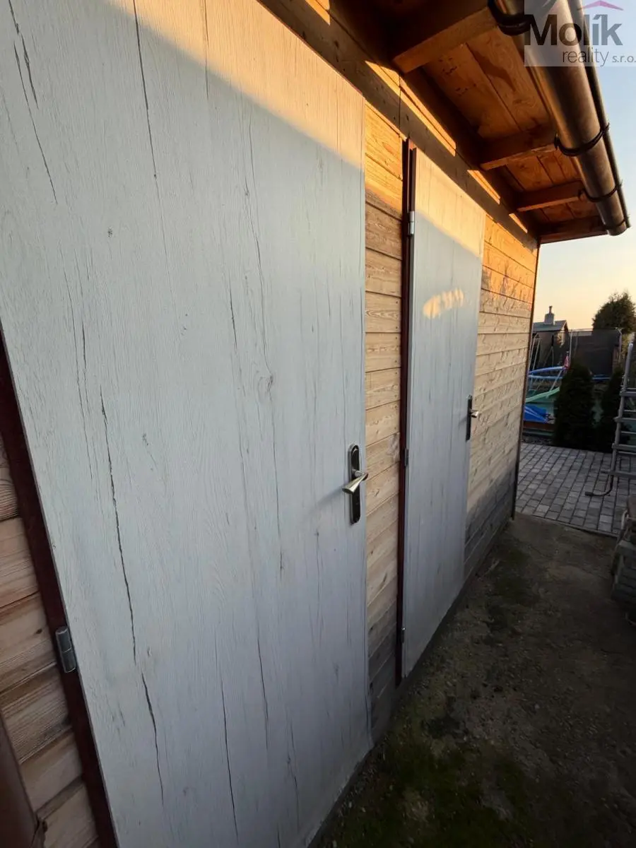 K dispozici je praktická kůlna například na nářadí a zahradní techniku..