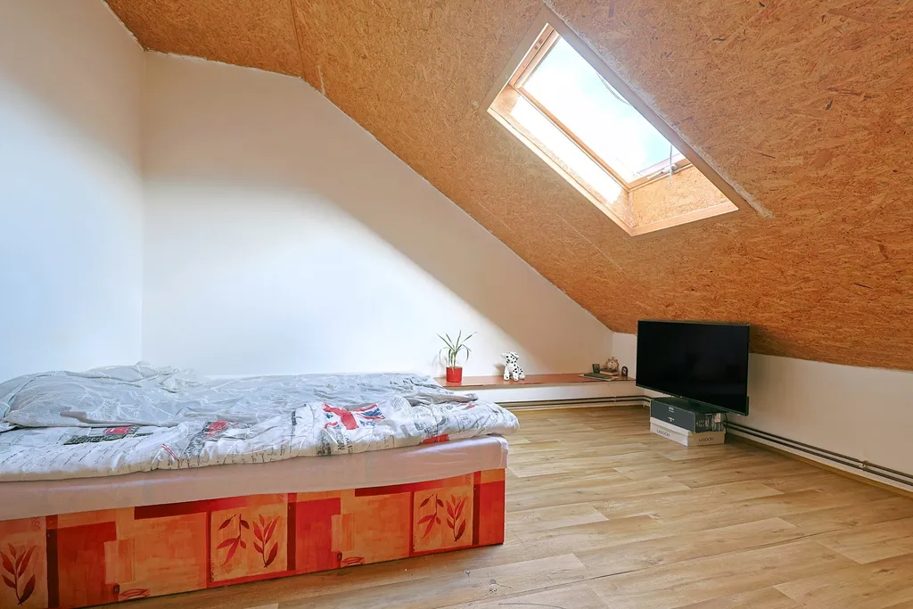 Půdní prostor 39 m² má stavební přípravu pro další bytovou jednotku. Kdo ho dokončí, zvýší jak měsíční příjem, tak hodnotu nemovitosti. Rozvody jsou připraveny, dispozici si kupující zvolí sám.
