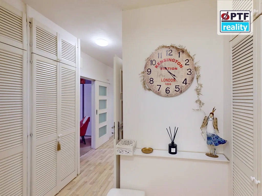 Kuchyň je plně vybavená — kuchyňská linka, plynová varná deska, odsavač par, vestavěná myčka a příjemný jídelní kout s oknem. Byt disponuje nadstandardními úložnými prostory, které oceníte v každodenním provozu. Celková dispozice je řešena atypicky a promyšleně, s důrazem na funkčnost a využití každého metru čtverečního.