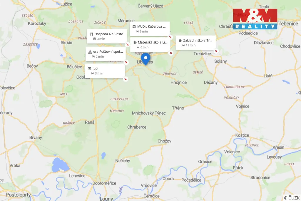 Bylo by velkou chybou odmítnout pozvání k prohlídce tohoto rodinného domu v malebné a klidné části obce Libčeves v okrese Louny s bohatou historií, nacházející se u silnice mezi Mostem a Lovosicemi. Řadový materiálně-stavebně kombinovaný dům 5+1 o užitné ploše 247 m² a zastavěné 80 m² na pozemku 385 m², žádající úpravu nového majitele dle vlastního vkusu a potřeb, nabízí vstupní předsíň s průchodem do garáže, toaletu, technickou místnost s kotlem s možností vybudování koupelny, dva neprůchozí pokoje a vstup na rovinatou zahradu. O poschodí výše jsou tři pokoje, kuchyně, koupelna s toaletou a přístup na půdu. Naše prohlídka bude pokračovat do garáže a na příjemnou a udržovanou zahradu s výjezdem na ulici s výhledem na zříceninu místního zámku. Nemovitost má připojení na veškeré inženýrské sítě s vytápěním na plynový kotel, který je ještě v záruce. Příjemná obec Libčeves má dostatečnou občanskou vybavenost a je ideálním místem pro rodinné bydlení. Na setkání s Vámi se těší Bohuš a Zuzka.