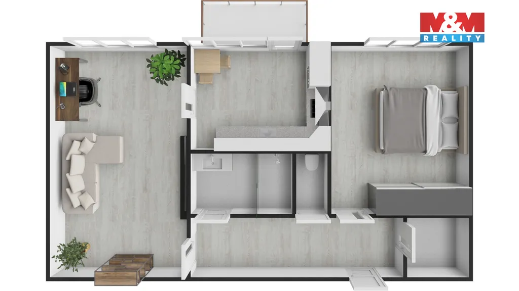 Velkou výhodou je balkon a také sklep, který poskytuje další úložný prostor.