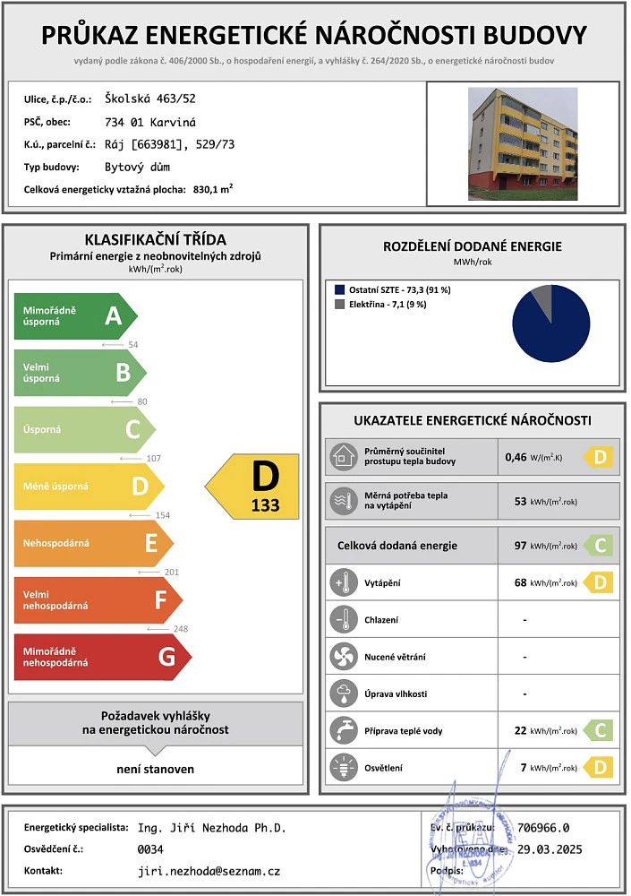 Měsíční náklady: služby 1398,-Kč + příspěvek do fondu oprav 1720,-Kč.