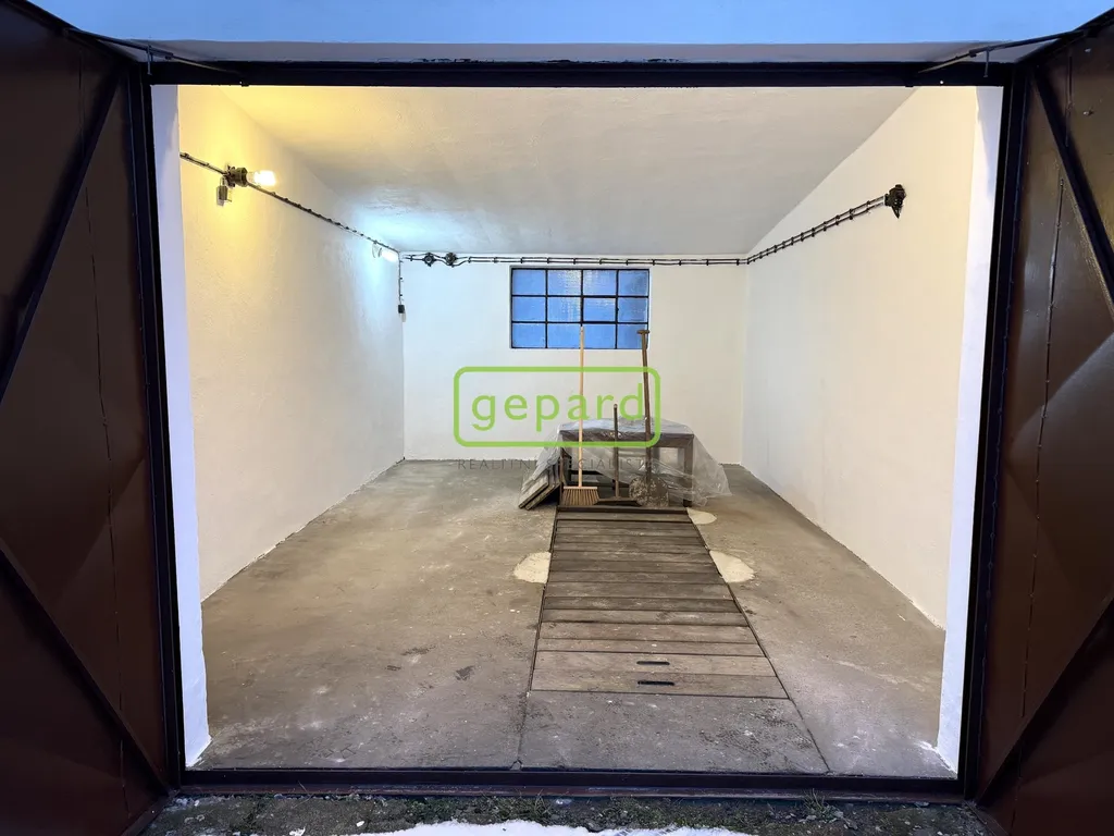 Vrata plechové dvoukřídlá. Do garáže je zavedena elektřina a vlastní elektroměr.
