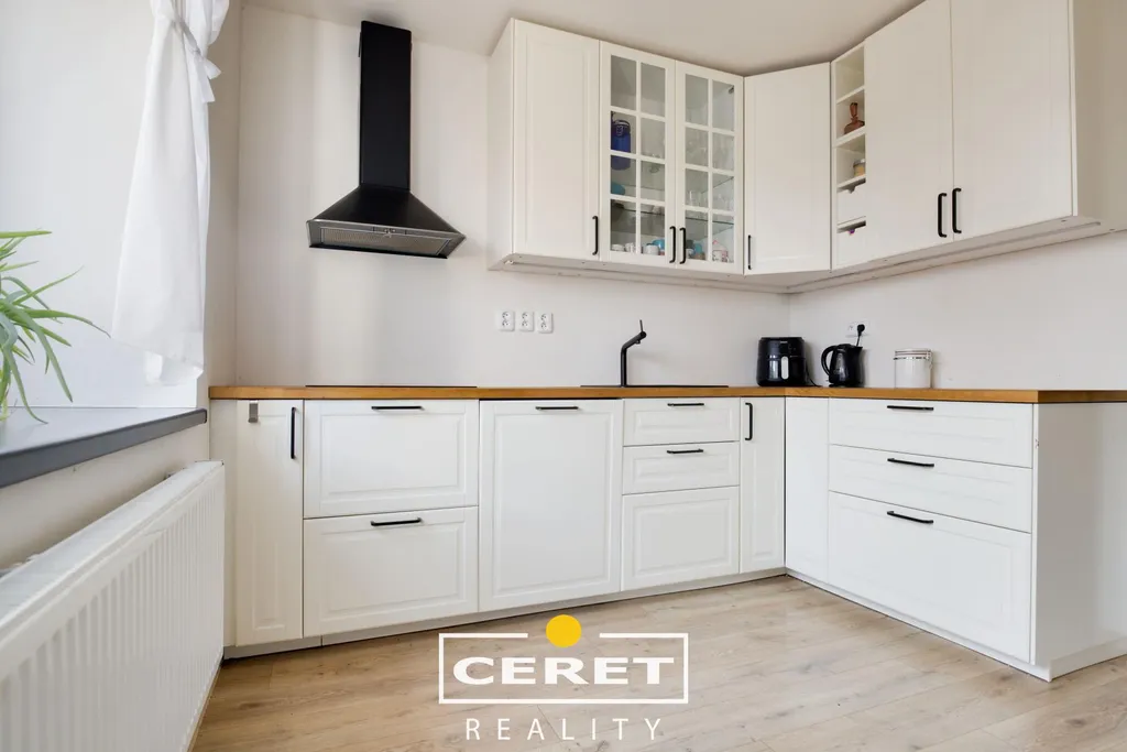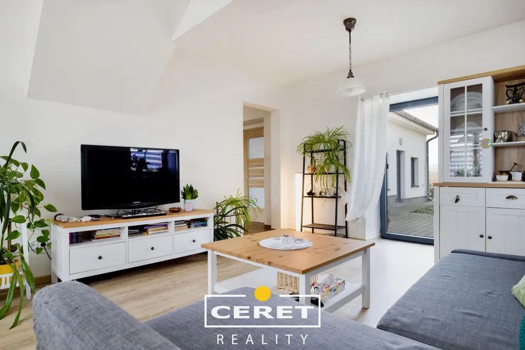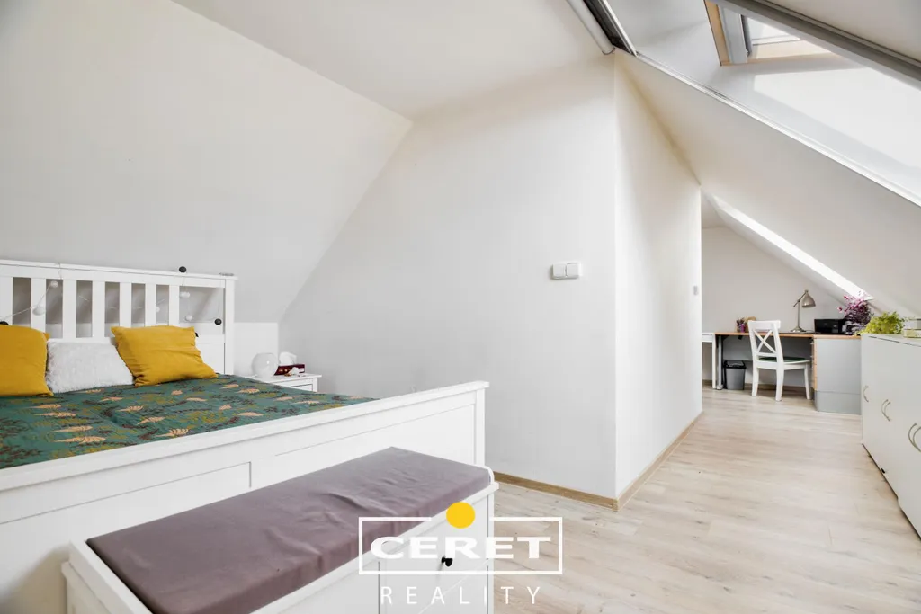 Stav po rekonstrukci: nová střešní krytina, plastová okna, vkusné laminátové podlahy, moderní koupelna
