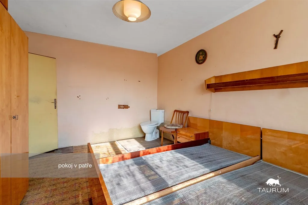 Chalupa je vhodná ke kompletní rekonstrukci. Na pozemku je maximální povolená zastavitelnost až 30 %, takže je možné pozemek rozdělit a postavit druhou nemovitost.