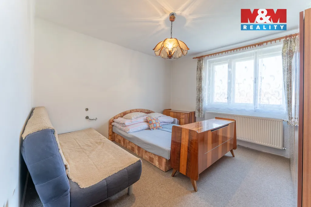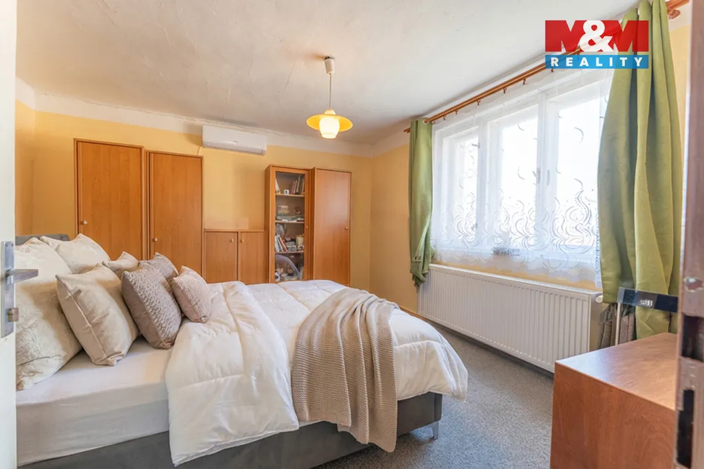 Prodej samostatného zděného rodinného domu 4+1, 2 NP, užitná plocha včetně terasy a podsklepení cca 285 m², plocha aktuálně obytných místností a příslušenství cca 144 m2, pozemek 1 677 m². Dům v udržovaném stavu, ihned obyvatelný, vhodný ke kompletní rekonstrukci. Do obytných místností 4+1 nezapočítán nedokončený pokoj/kuchyně v II.NP, prostorné zádveří - vstupní hala a malý pokoj za vstupní halou. Terasa 30 m2 s výhledem na město, podsklepení, volná půda. Vytápění kotlem na peletky se zásobníkem a dávkovačem (záloha: kotel na tuhá paliva a elektrokotel). V jedné ložnici klimatizace. Možnost vybudovat druhou kuchyni a koupelnu a vytvořit dvougenerační dům. Podle ústního vyjádření stavebního úřadu lze pozemek rozdělit a na části postavit další RD. Na pozemku prostorný zahradní domek. Ihned volné, prohlídky po domluvě. PENB se aktuálně počítá, proto uvádíme hodnotu G.
