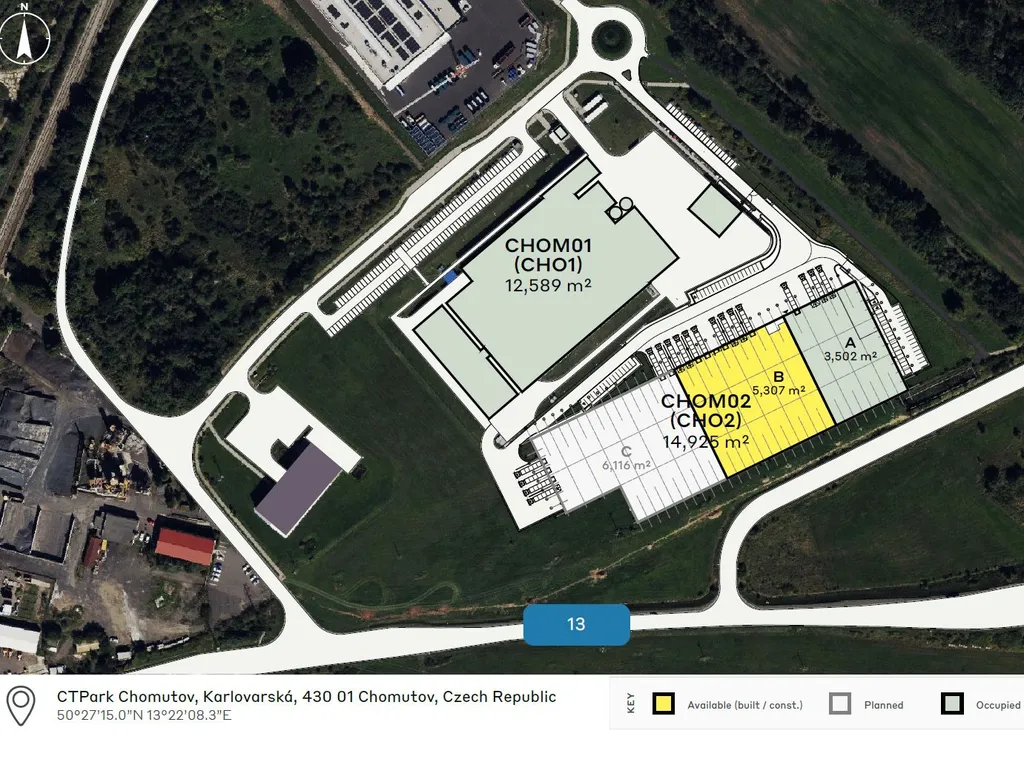 - prostor lze dělit na jednotky od cca 3000 m² (budova CHO2)