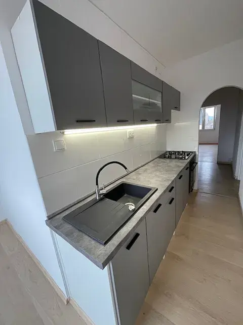 Byt se skládá z předsíně, kuchyně s jídelním koutem, koupelny s toaletou, ložnice a obývacího pokoje. Okna jsou plastová. V předsíni, kuchyni, ložnici a obývacím pokoji položena nová plovoucí podlaha, v koupelně a na toaletě kvalitní dlažba. Kuchyně je nově vybavena kuchyňskou linkou, plynovým sporákem a pečící troubou. V koupelně se nachází sprchový kout, toaleta, umyvadlo s úložnou skříňkou, velké zrcadlo a přípojka na automatickou pračku. K bytu náleží sklep v suterénu a komora v mezipatře.