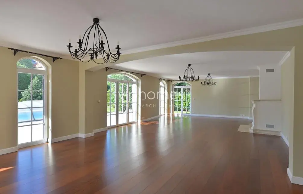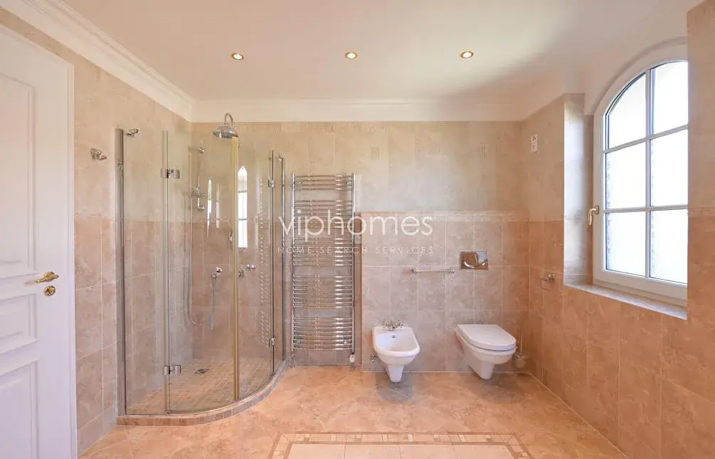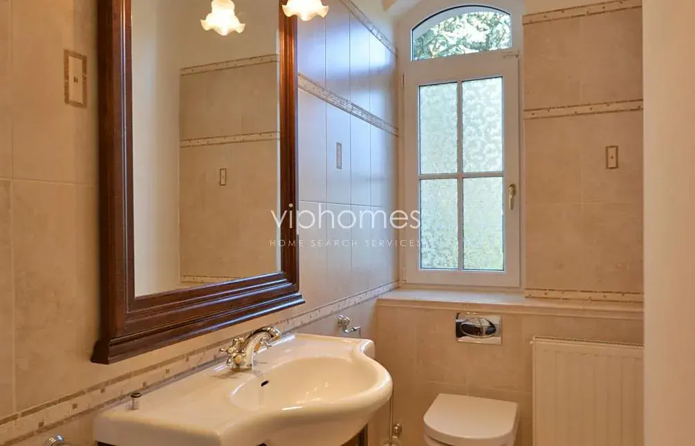 Hlavní obytný prostor v přízemí zahrnuje komfortní obývací pokoj s krbem, plně vybavenou kuchyň s jídelnou a spíží, dva pokoje s flexibilním využitím, koupelnu, samostatnou toaletu, technickou místnost. Na obývací pokoj navazuje venkovní terasa, klidný zahradní prostor s krytým vyhřívaným bazénem. V horním patře je umístěna centrální hala, 4 ložnice, 3 koupelny, 2 šatny, terasa, a technická místnost. Kuchyně je kompletně vybavena ( 2 lednice, teplovzdušná trouba, mikrovlnná trouba, myčka nádobí).