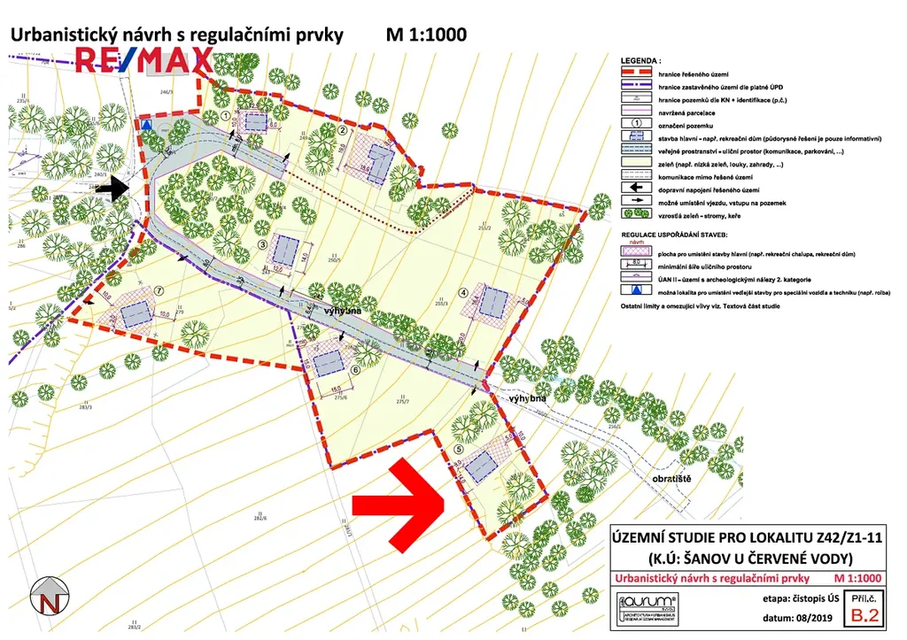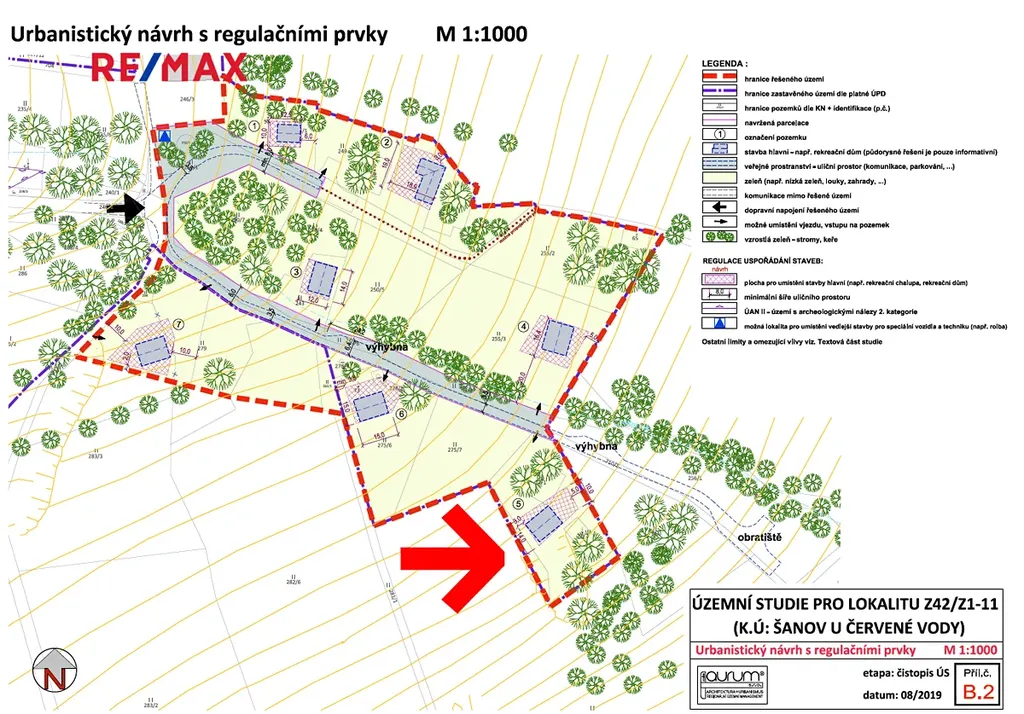 Na lokalitu je již vypracována územní studie, určuje zastavěnou plochu hlavní stavby 70 - 150m², koeficient zastavění je stanoven na 35%.