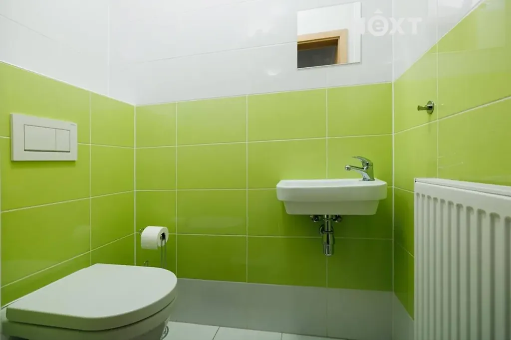 Koupelna je vybavena sprchovým koutem a pračkou, toaleta je samostatná, což zvyšuje komfort každodenního bydlení.