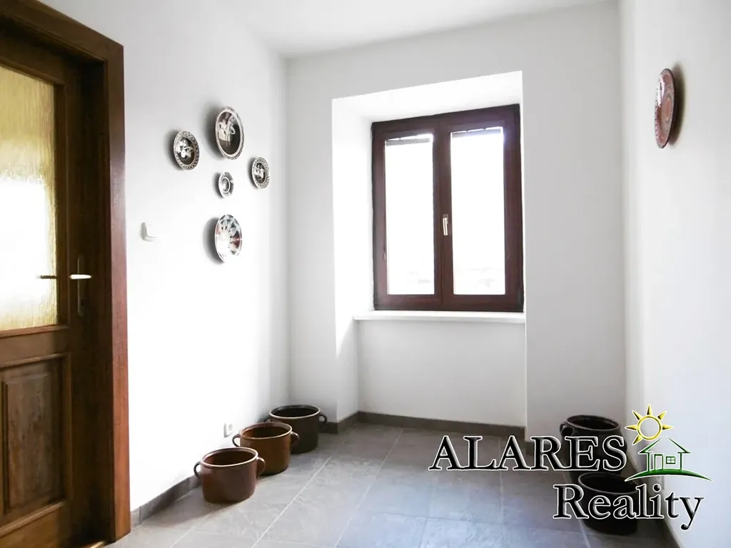 Bývalá hospodářská budova předělaná na technickou místnost, komoru, dílnu, dvojgaráž (el. vrata na dálkové ovládání), sklípek, a nad tím vším opět prostorná půda.