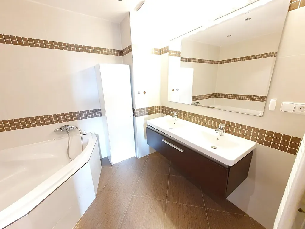 Prostorná vstupní hala, samostatná toaleta, velká koupelna s rohovou vanou a dvěma umyvadly, dřevěné plovoucí podlahy. Prostorný světlý a slunný obývací pokoj s rohovou kuchyňskou linkou vybavenou spořebiči.